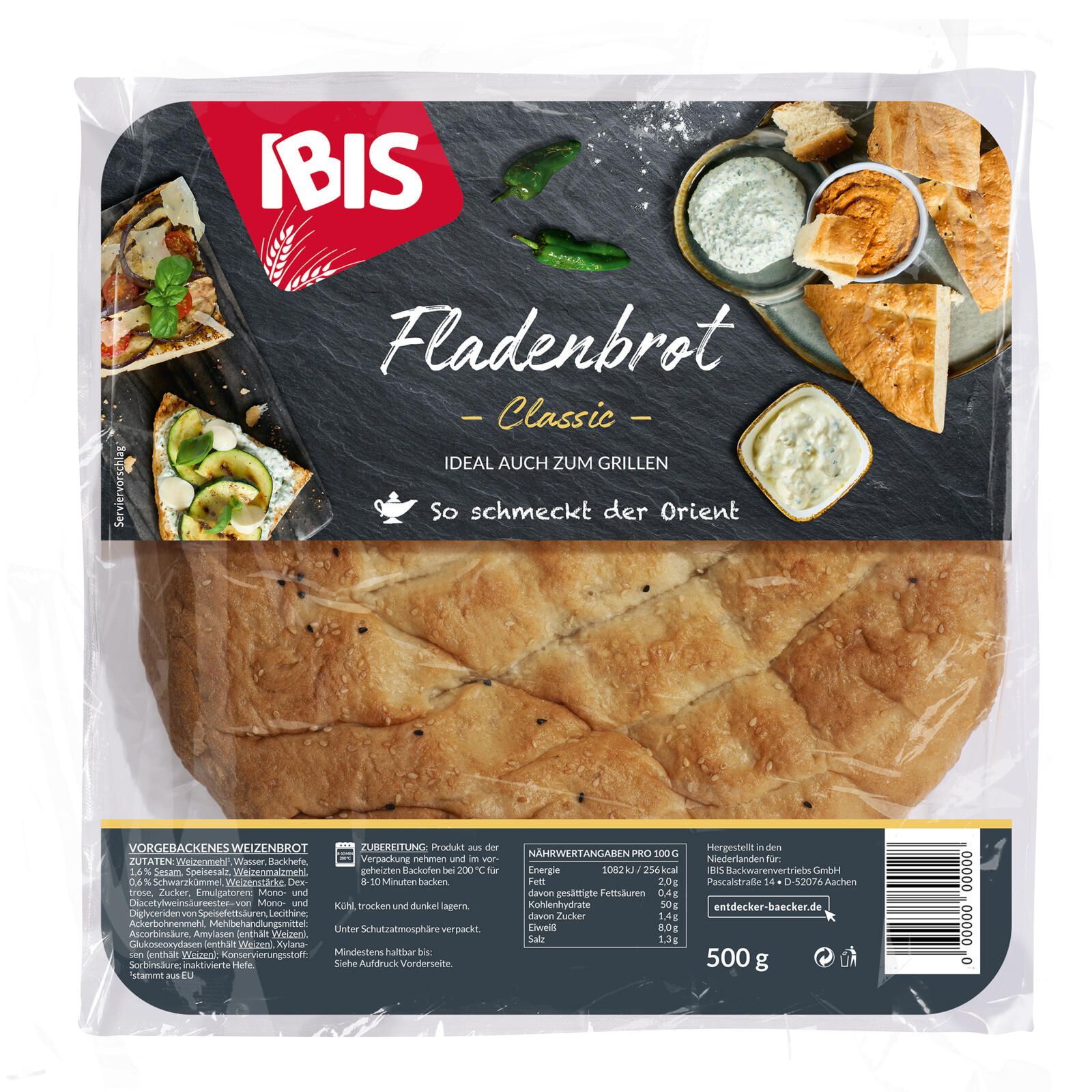 Produkt aus der Verpackung nehmen und im vorgeheizten Backofen bei 200 °C für 8-10 Minuten backen.