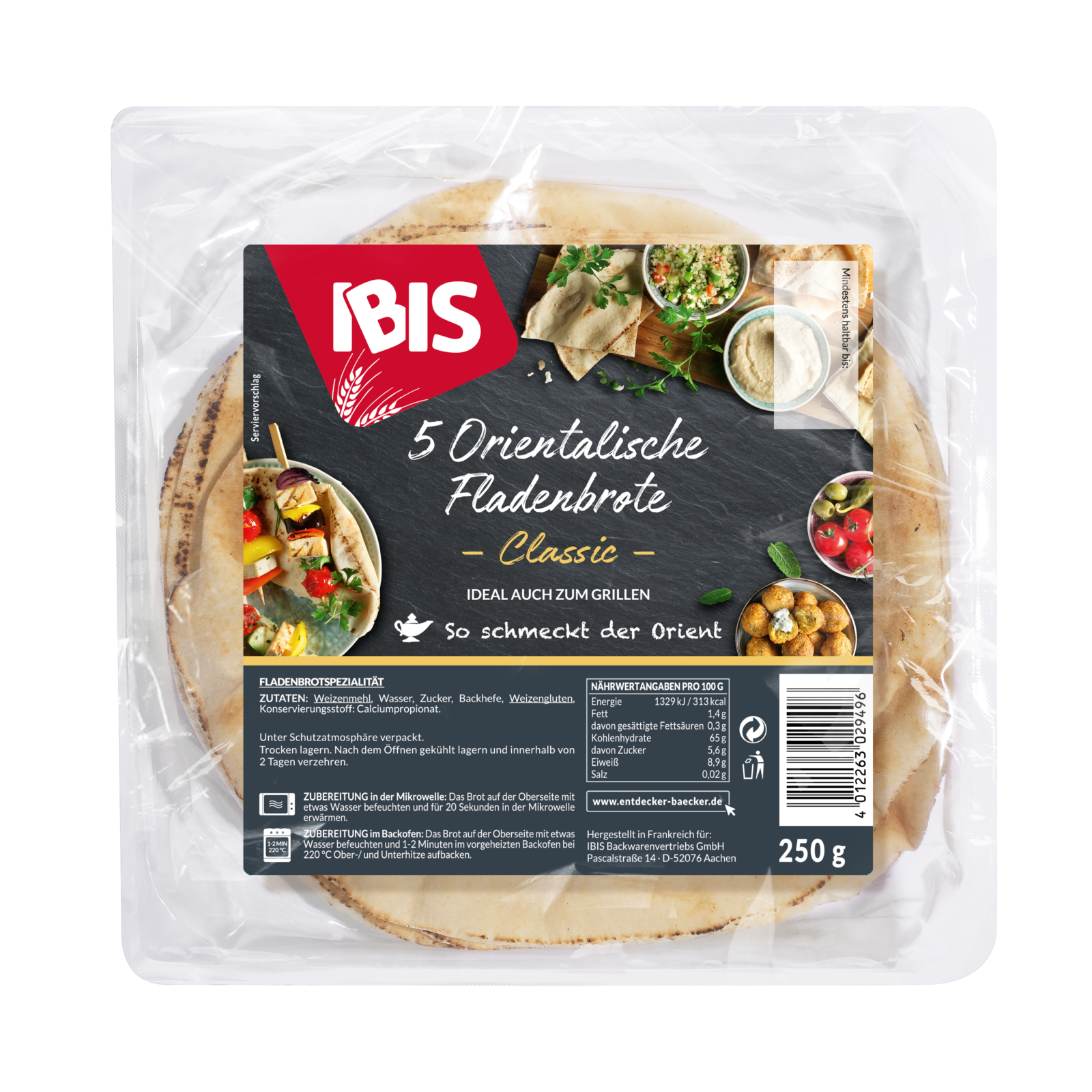 Im vorgeheizten Backofen bei 220°C Ober-/ und Unterhitze ca. 1–2 Minuten aufbacken