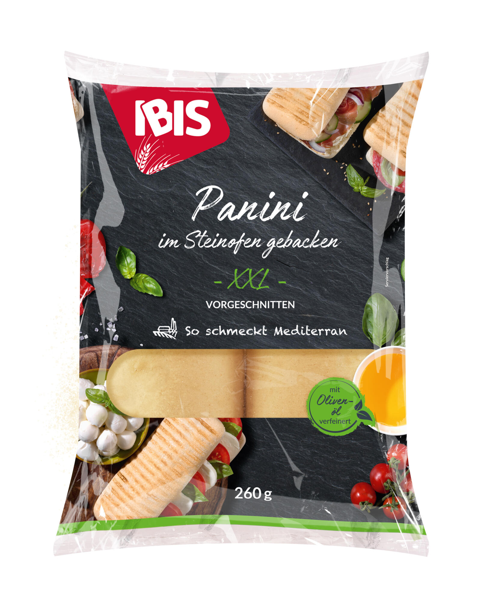 Panini nach Wunsch belegen und für vier Minuten je nach gewünschter Bräunung im Kontaktgrill toasten oder im Backofen für fünf Minuten bei 200 °C aufbacken.